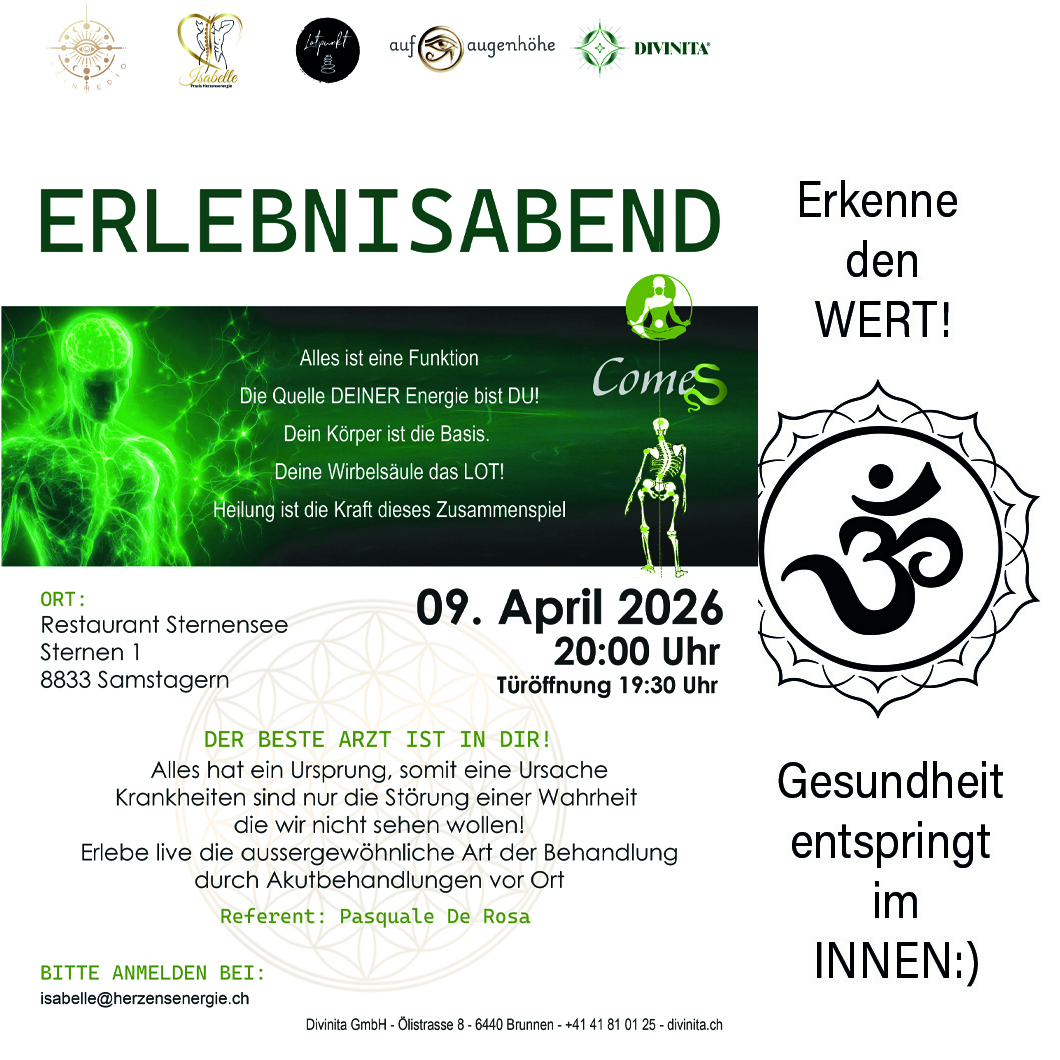 Unbedingt Anmelden! Akut-Behandlungen vor Ort selbst erfahren durch Pasquale: Kostenbeitrag 20.-
